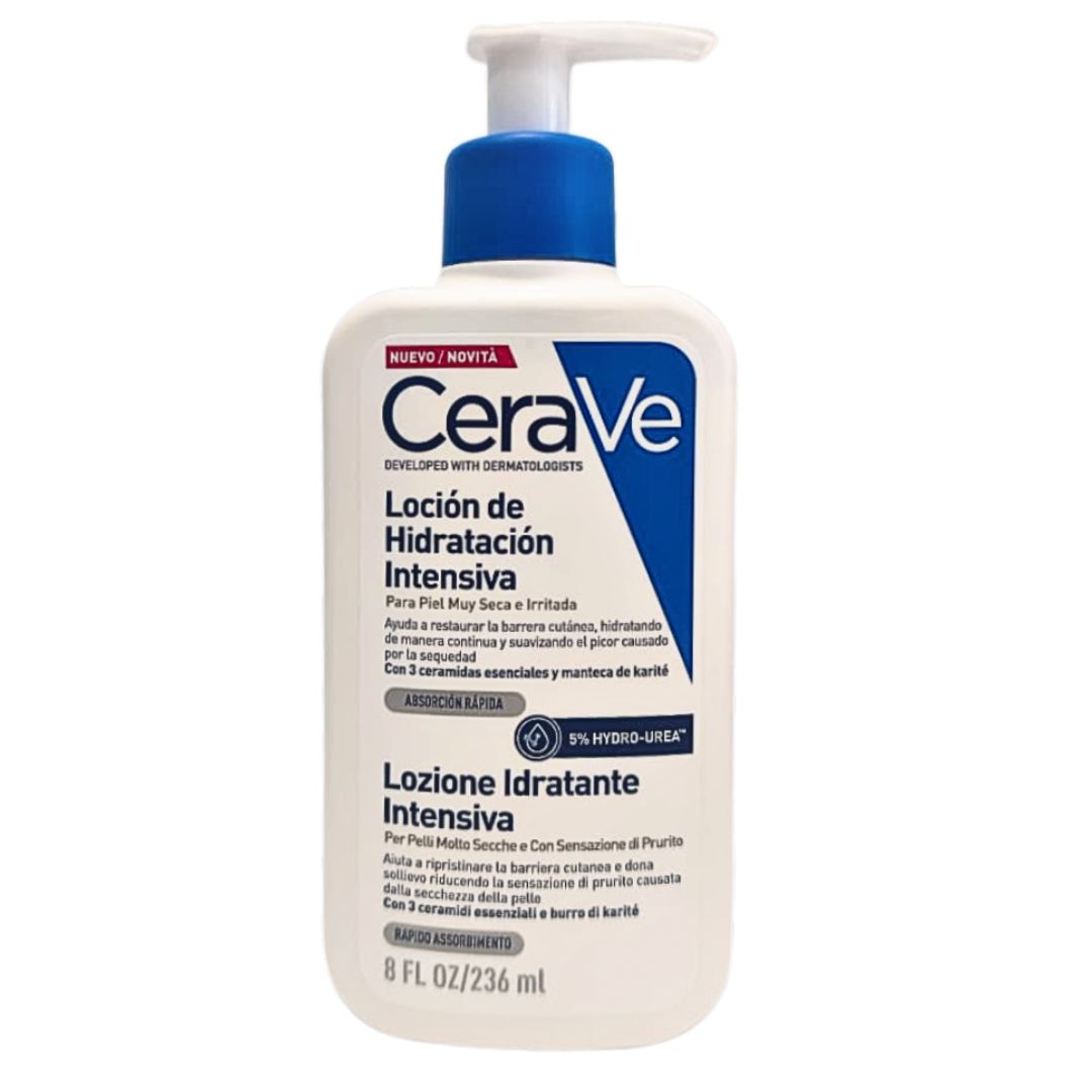 Locion Hidratante Intensiva CeraVe es un tratamiento especializado para piel seca a muy seca, formulado con dermatologos para ofrecer hidratacion profunda y reparacion cutanea.